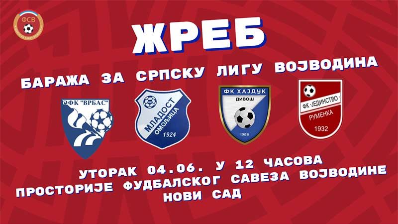 U prostorijama Fudbalskog saveza Vojvodine u Novom sadu, sutra će se obaviti žreb za baraž utakmice oko popune jednog mesta u Srpskoj ligi, Vojvodina.